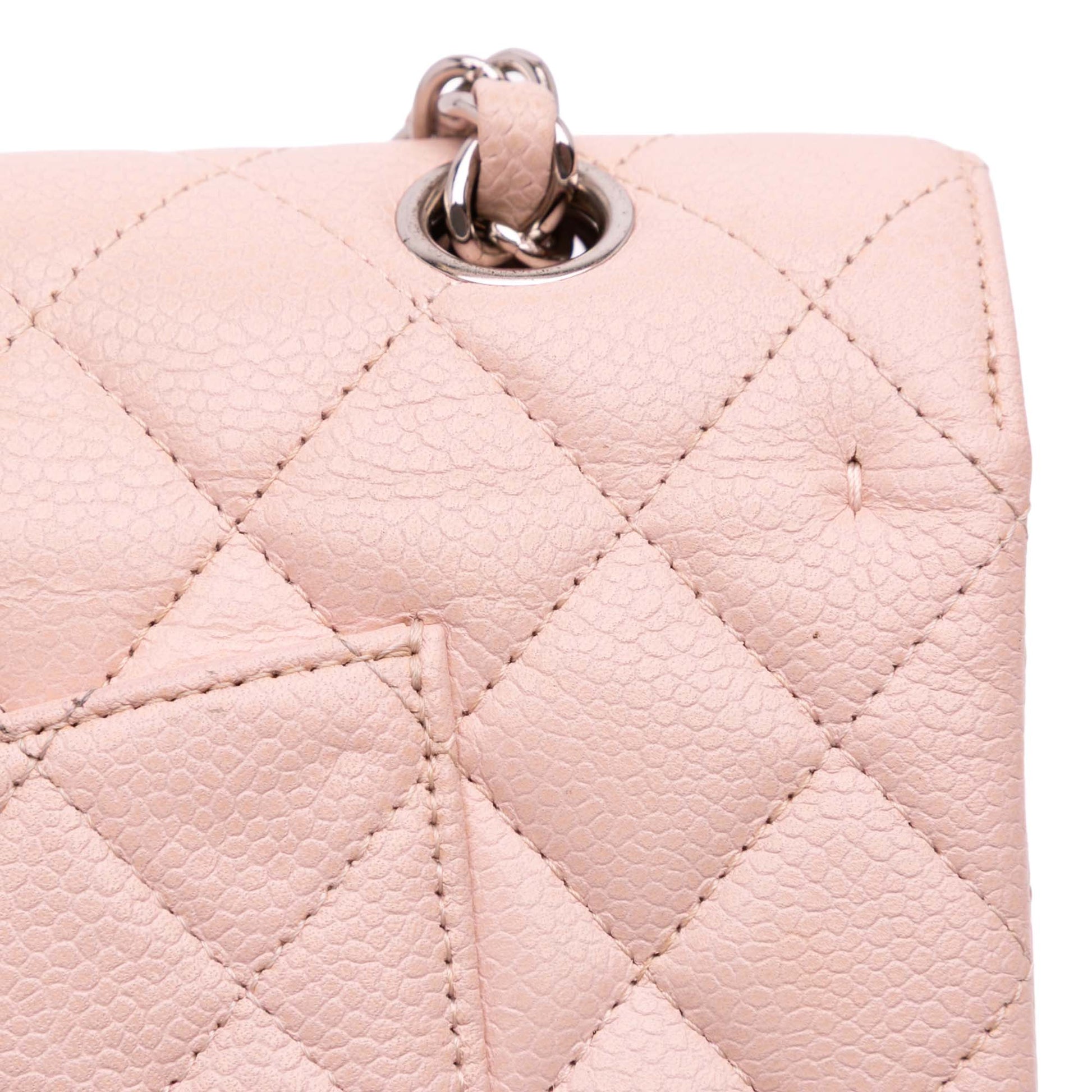 Questa borsa a tracolla Chanel Caviar Classic Double Flap Medio, realizzata in pregiata pelle di caviale rosa, unisce eleganza e funzionalità. Le tracolle a catena intrecciate in pelle donano un tocco raffinato, mentre le doppie patte con chiusura CC a girello assicurano un accesso sicuro e distintivo. Con misure contenute ma capienti, offre tasche interne e una tasca esterna a bustina per un’organizzazione pratica. Nato in Francia nel 2014, questo pezzo vintage porta con sé i segni del tempo che raccontano una storia di stile vissuto e autenticità, perfetto per chi celebra la bellezza nell’imperfezione.