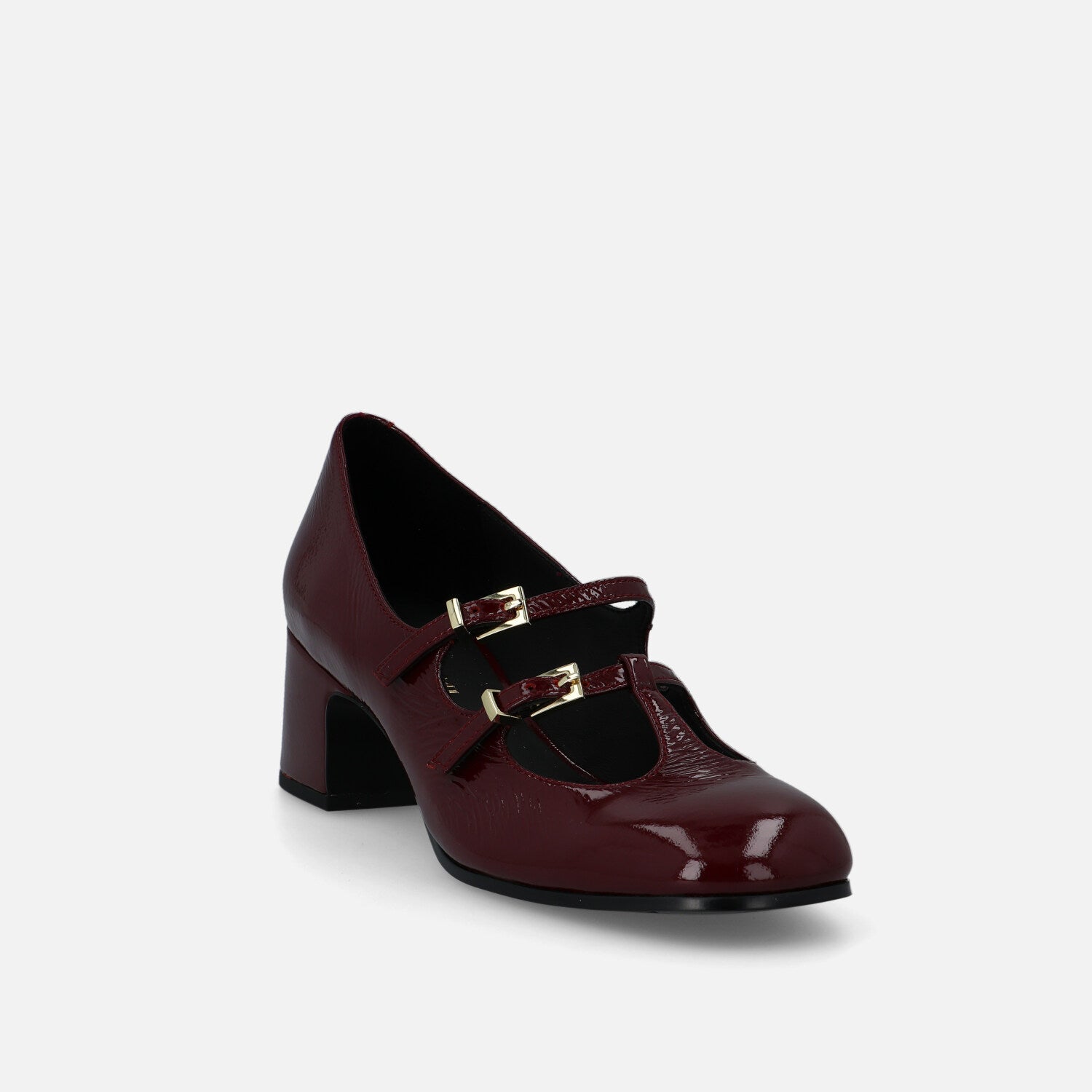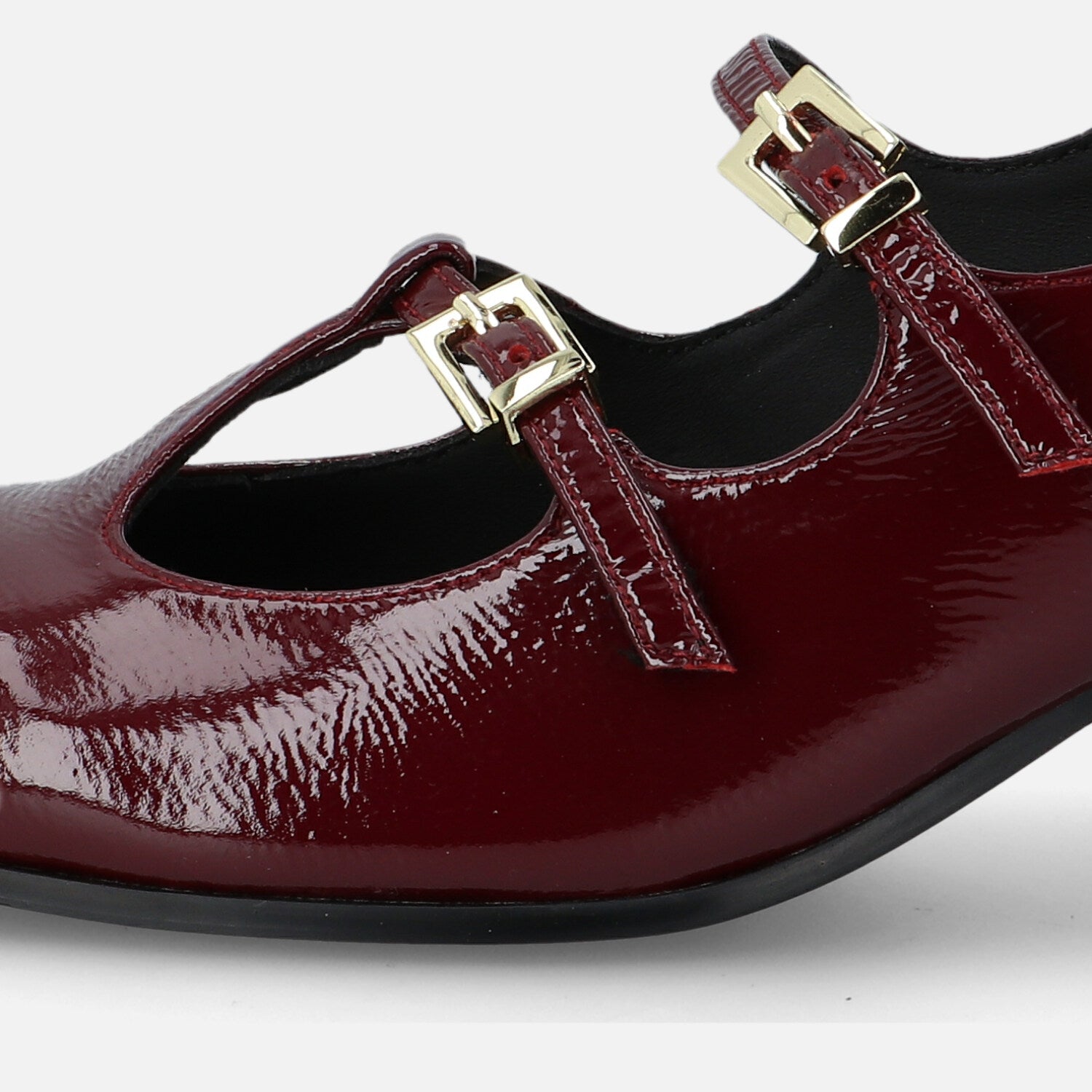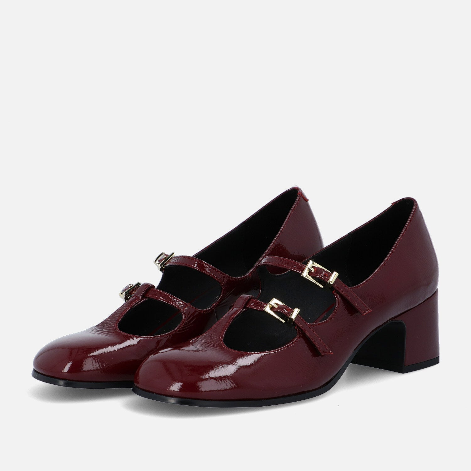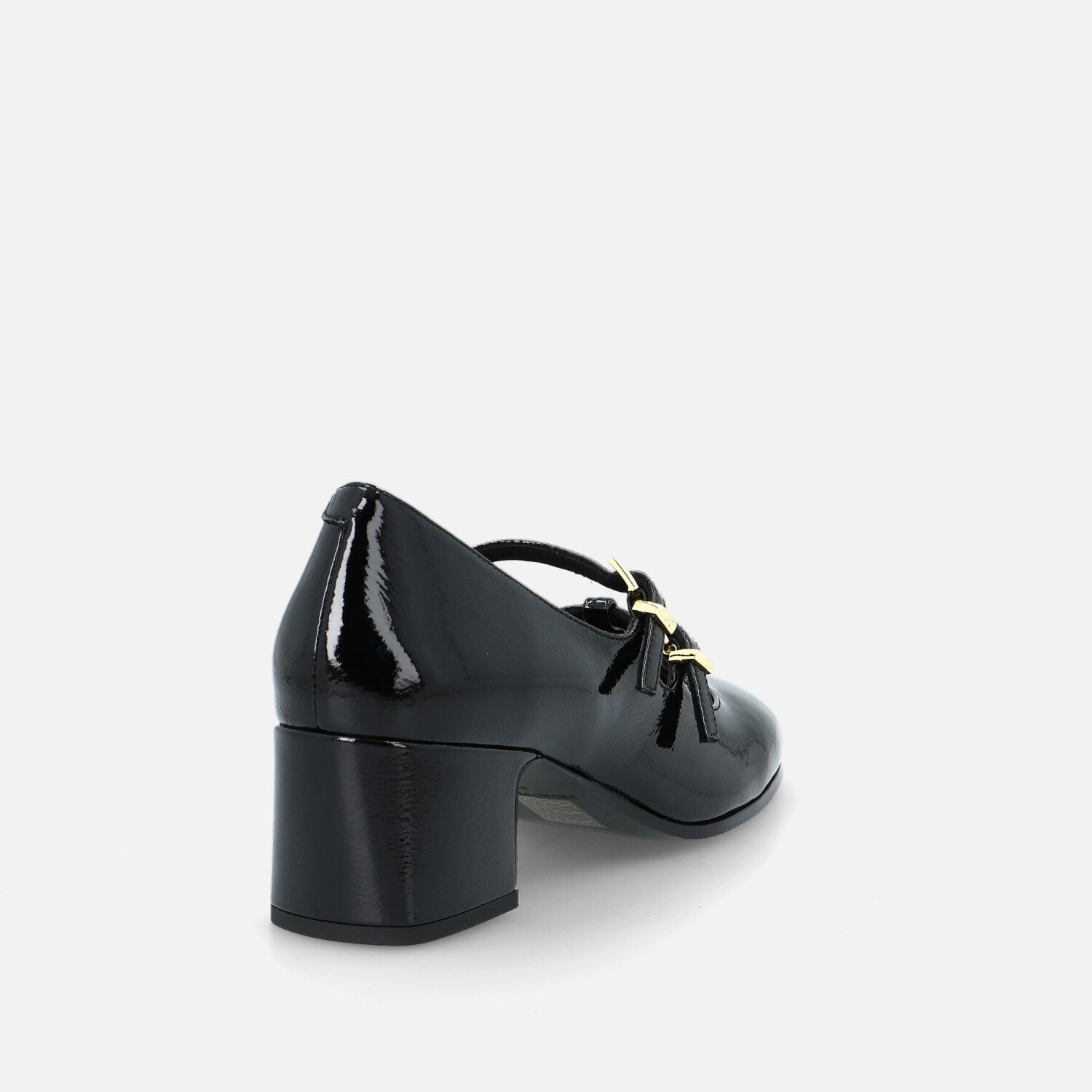 Le Doly Jane sono pumps in pelle verniciata ad acqua che rievocano lo stile rétro con un tocco contemporaneo e sofisticato. La tomaia presenta una punta tonda e due cinturini sottili con fibbie dorate, che disegnano un elegante motivo a T sul collo del piede, aggiungendo struttura e charme al design. Il tacco largo e squadrato di media altezza garantisce stabilità e comfort, rendendo il modello ideale per un uso quotidiano chic. Una scarpa dall’allure vintage, perfetta per completare outfit femminili e raffinati con un accento distintivo e versatile.