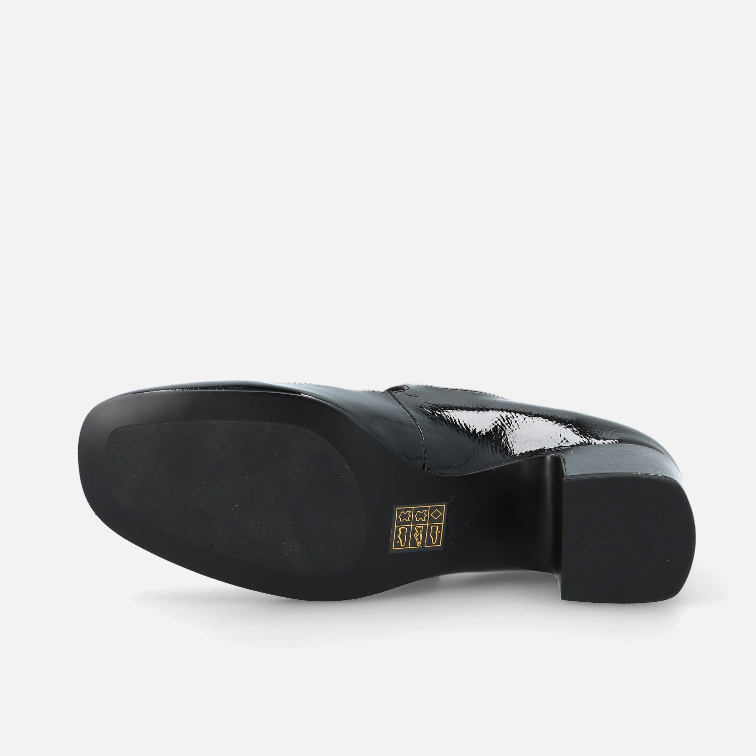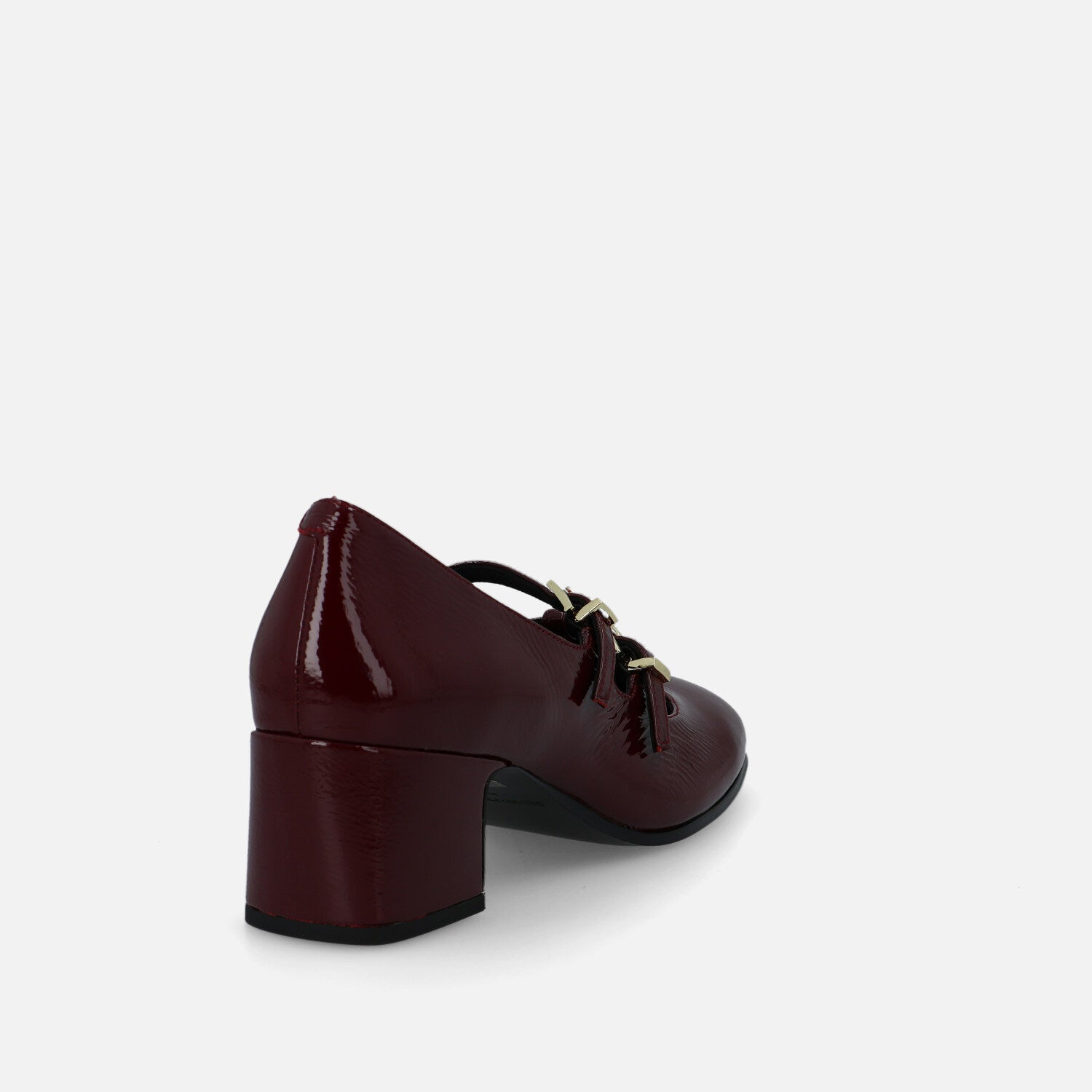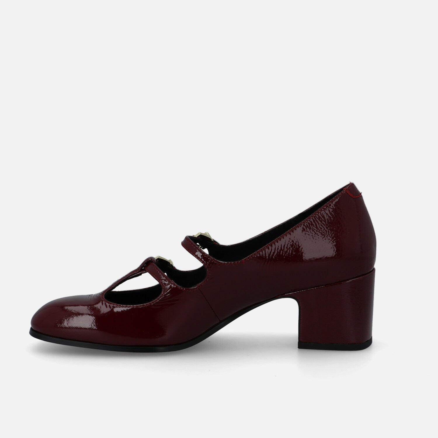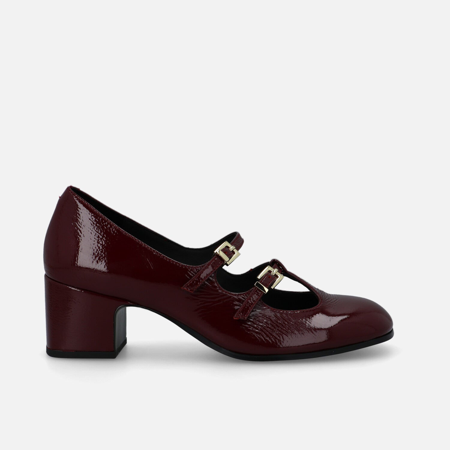 Le Doly Jane sono pumps in pelle verniciata ad acqua che rievocano lo stile rétro con un tocco contemporaneo e sofisticato. La tomaia presenta una punta tonda e due cinturini sottili con fibbie dorate, che disegnano un elegante motivo a T sul collo del piede, aggiungendo struttura e charme al design. Il tacco largo e squadrato di media altezza garantisce stabilità e comfort, rendendo il modello ideale per un uso quotidiano chic. Una scarpa dall’allure vintage, perfetta per completare outfit femminili e raffinati con un accento distintivo e versatile.