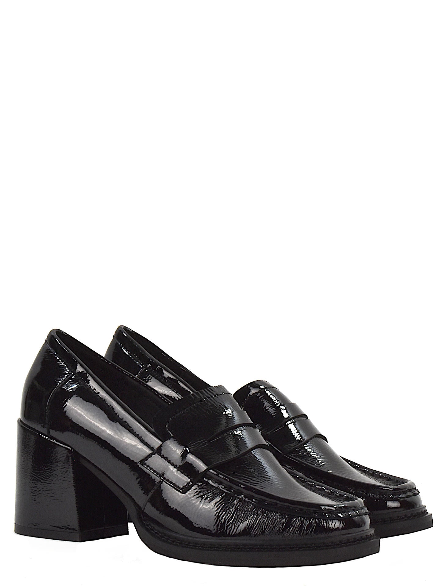Mocassino Nero IN NAPLAK (MORBIDA NAPPA LACCATA). TACCO 70, FONDO GOMMA. BM2204X