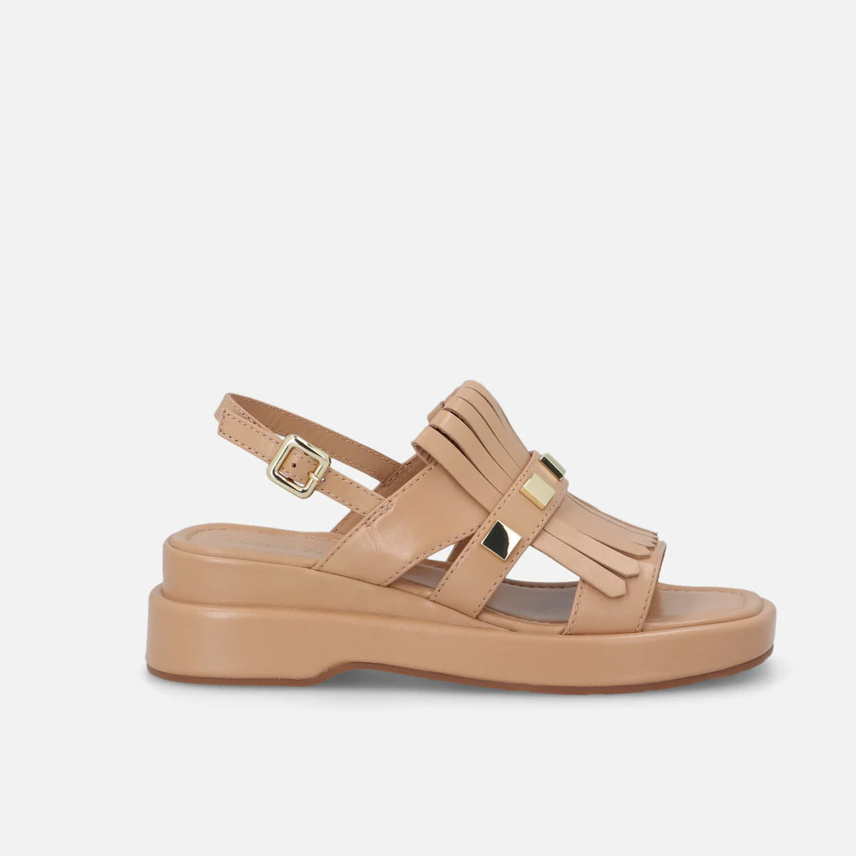 Dallo spirito urban-chic, il sandalo Tasa Dida unisce carattere e comfort in una silhouette essenziale ma distintiva. Realizzato in pelle liscia, è impreziosito da un raffinato motivo a frange sul collo del piede e dettagli metallici dorati che ne esaltano l’attitudine contemporanea. La suola platform leggera assicura sostegno durante tutta la giornata, mentre la chiusura con cinturino regolabile alla caviglia garantisce una calzata personalizzata.