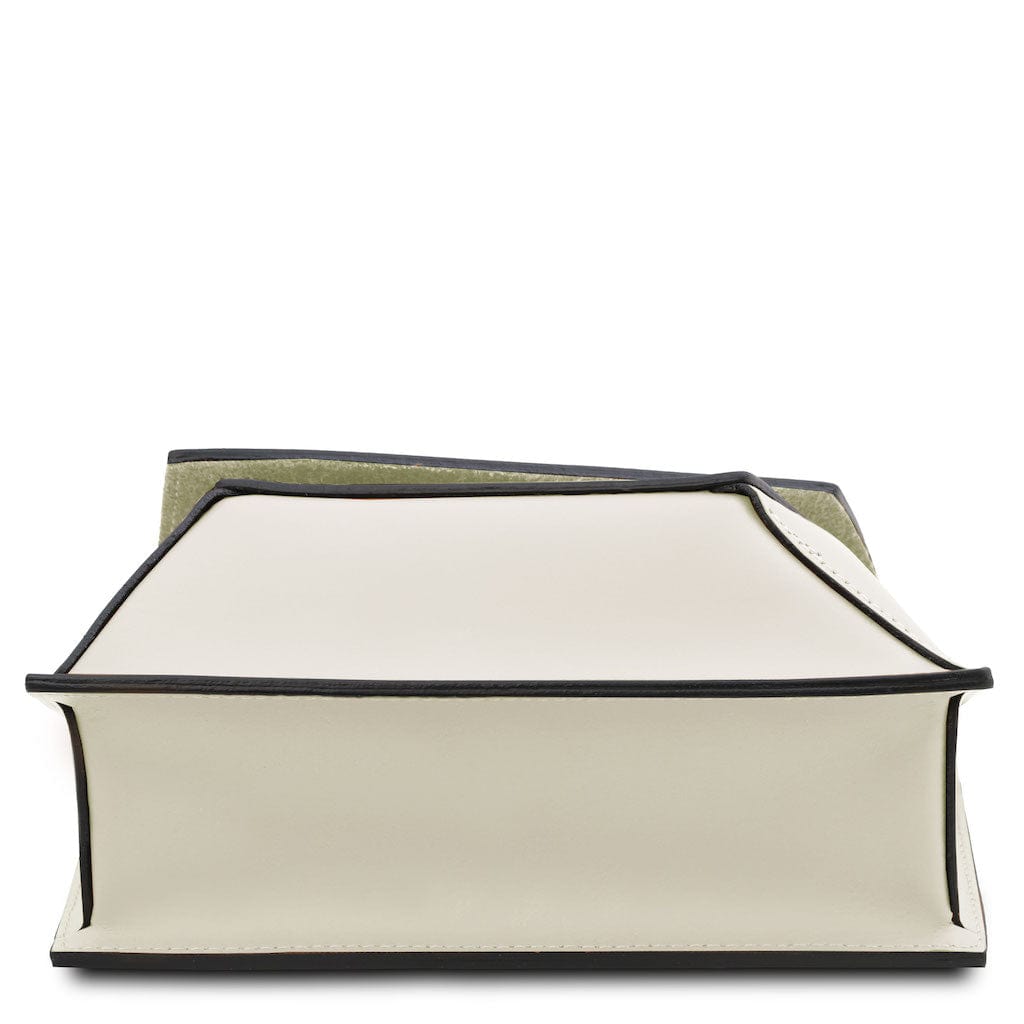 Discover one of our most popular leather shoulder bags that's a true testament to Italian craftsmanship and refined design. This crossbody bag captivates with its unique geometric shape, merging sophistication with timeless elegance.