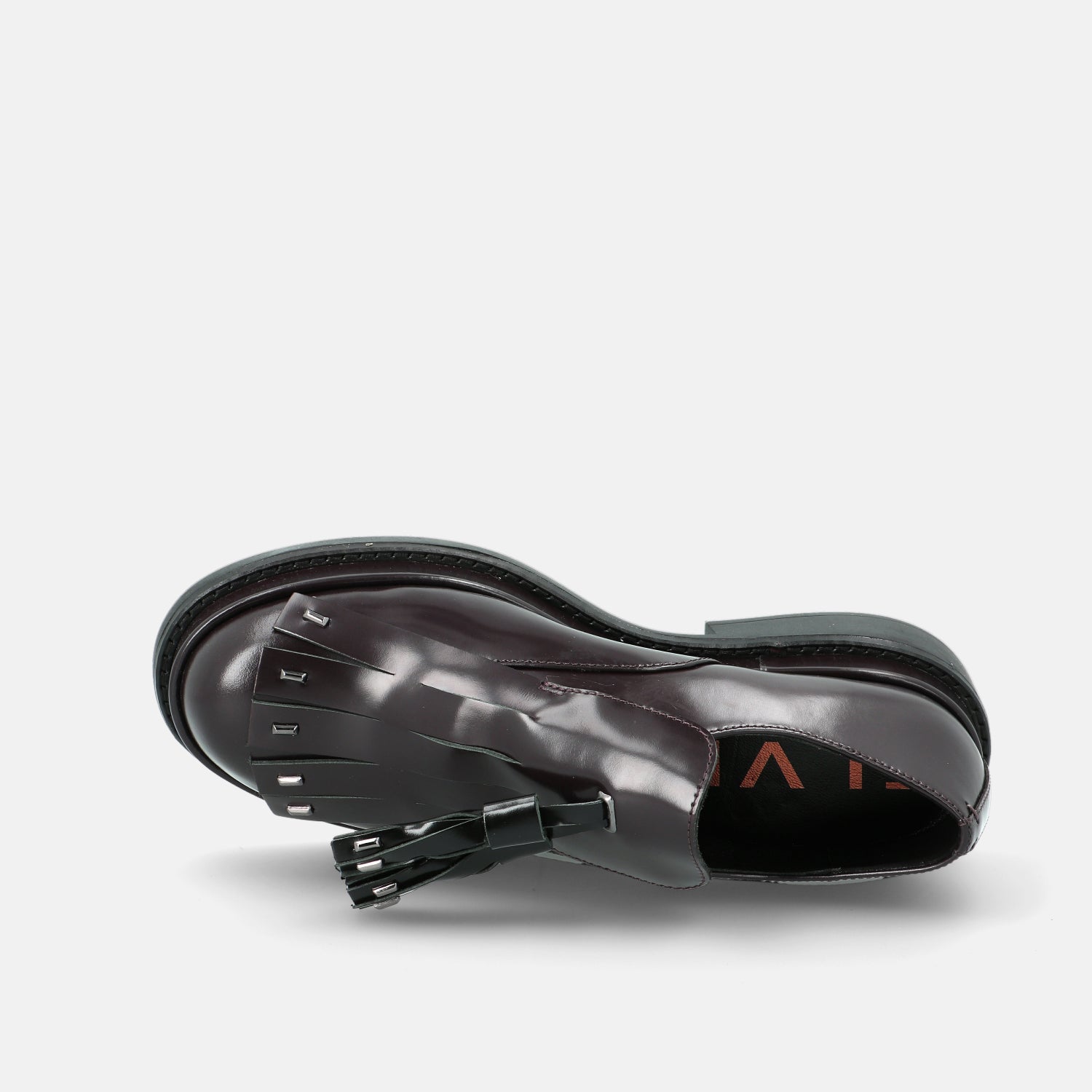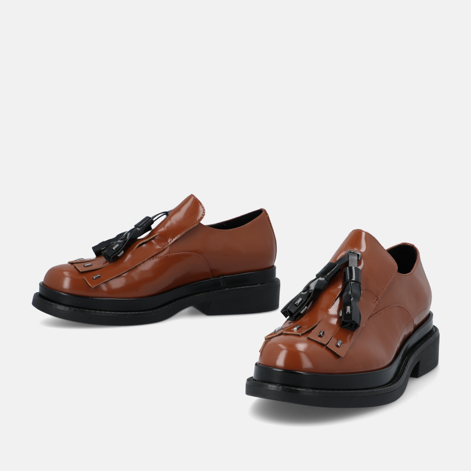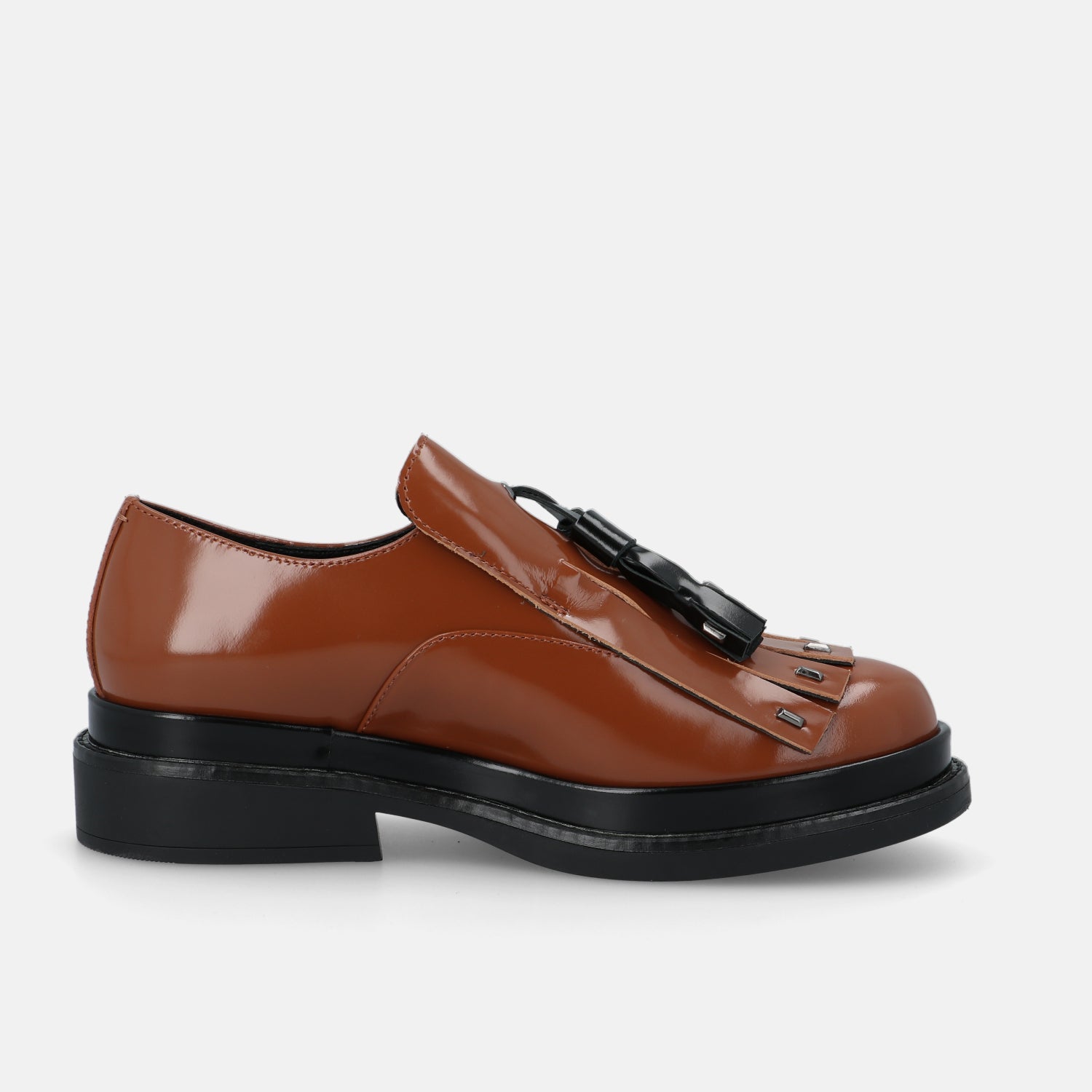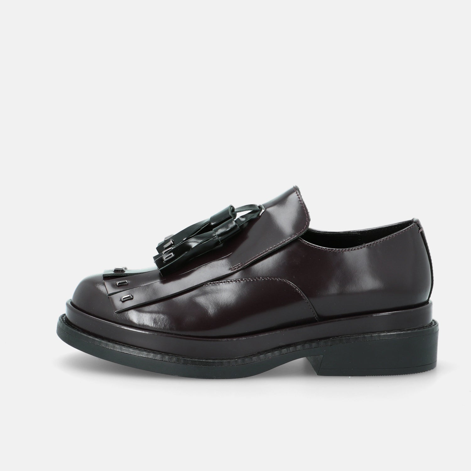 I mocassini Upla Engla sono la scelta perfetta per chi cerca eleganza e comfort in un’unica calzatura. Realizzati in pelle spazzolata, si distinguono per la finitura lucida e sofisticata che ne esalta le linee essenziali. La frangia con nappine e i dettagli metallici donano un carattere ricercato e contemporaneo, mentre l’elastico sotto la linguetta garantisce una calzata pratica e avvolgente, pensata per accompagnare con naturalezza ogni movimento.