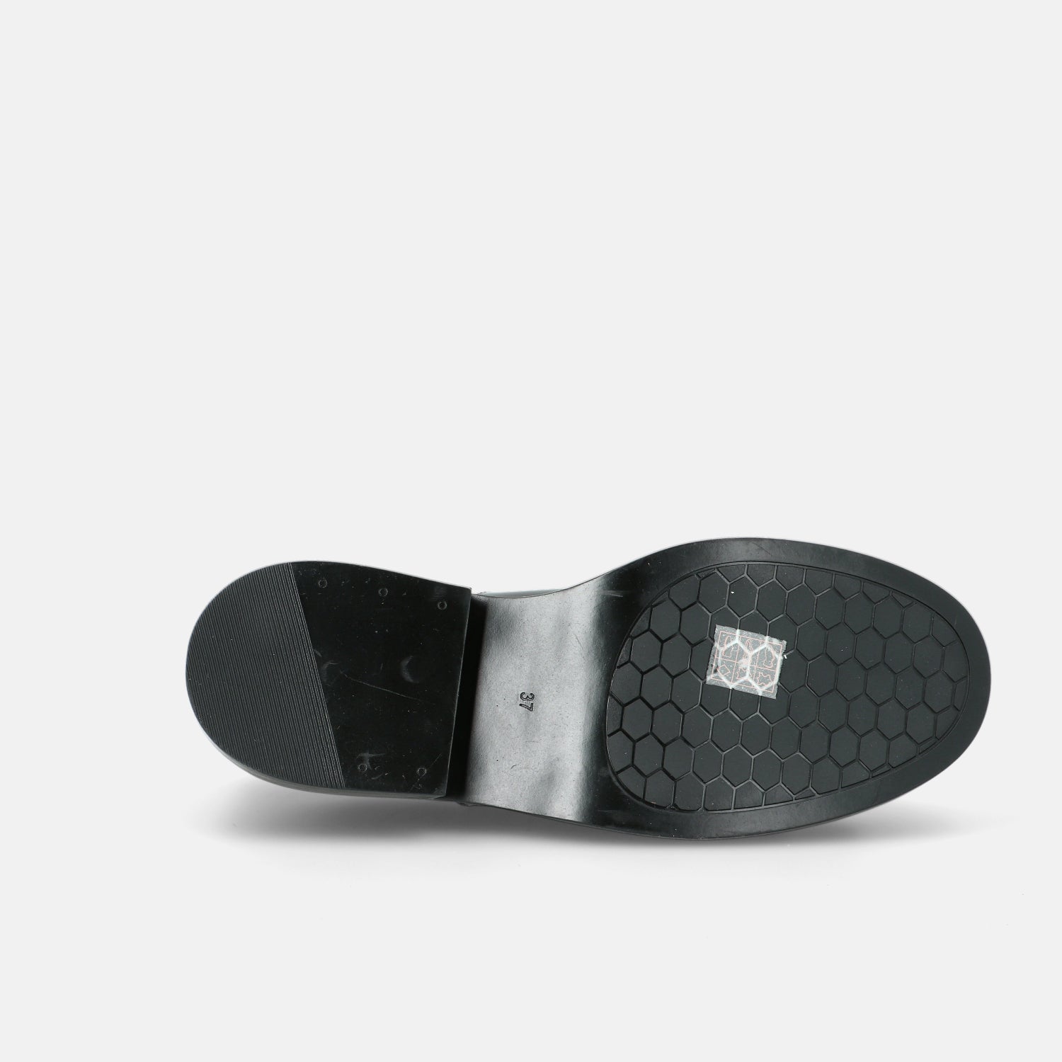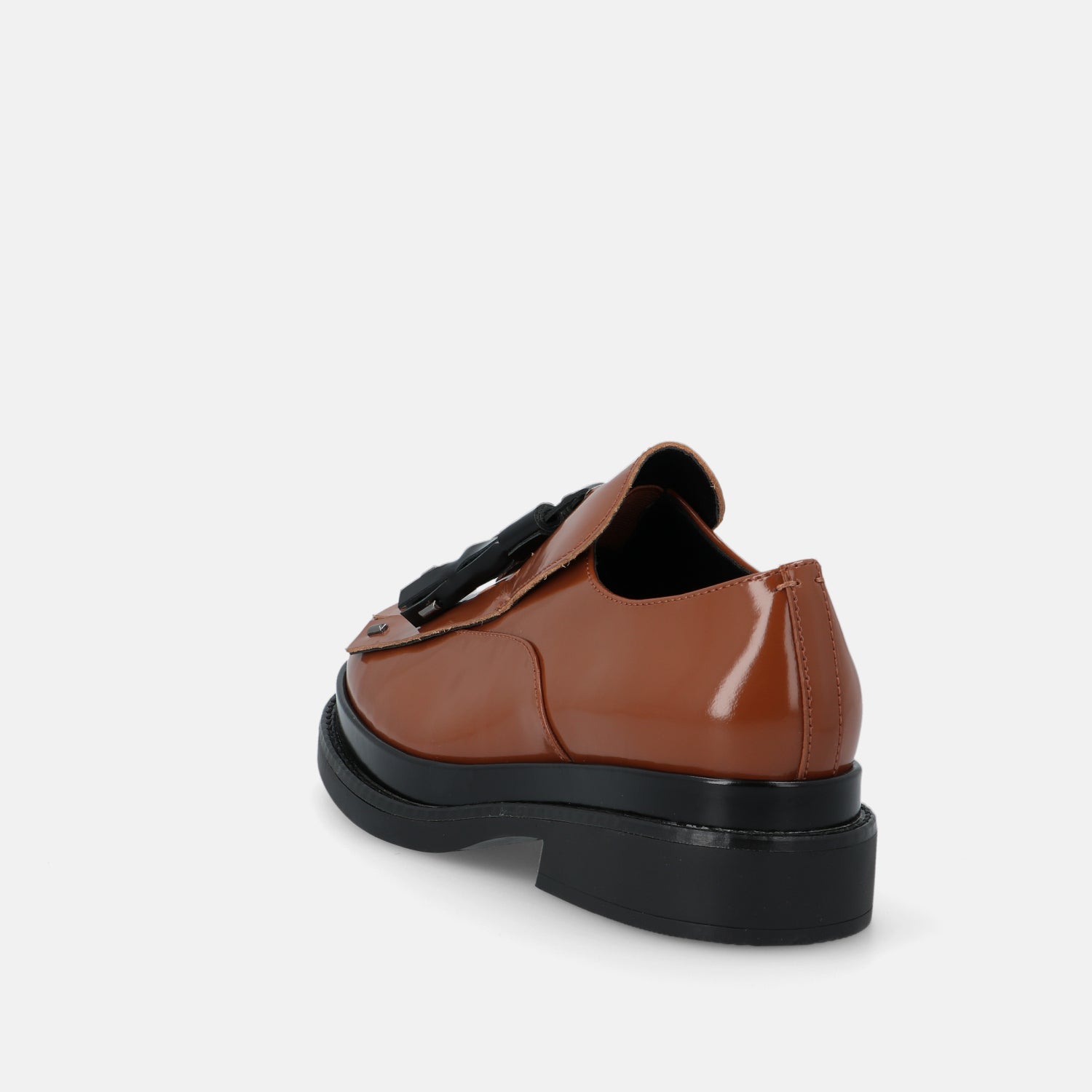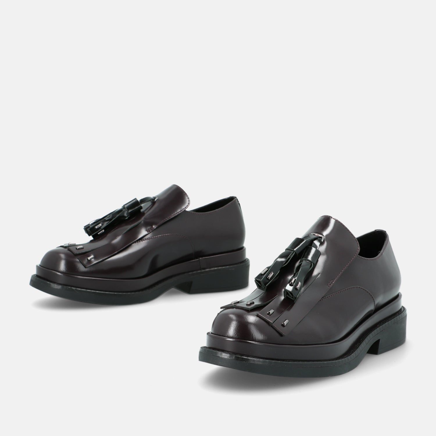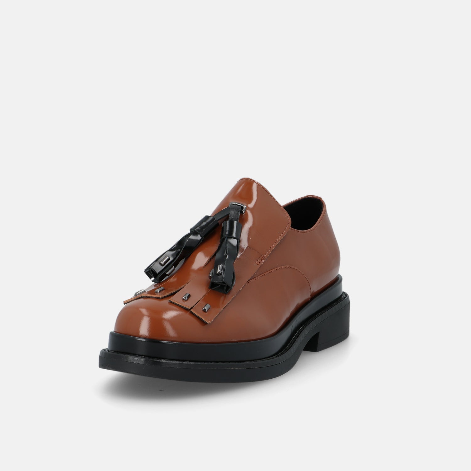 I mocassini Upla Engla sono la scelta perfetta per chi cerca eleganza e comfort in un’unica calzatura. Realizzati in pelle spazzolata, si distinguono per la finitura lucida e sofisticata che ne esalta le linee essenziali. La frangia con nappine e i dettagli metallici donano un carattere ricercato e contemporaneo, mentre l’elastico sotto la linguetta garantisce una calzata pratica e avvolgente, pensata per accompagnare con naturalezza ogni movimento.